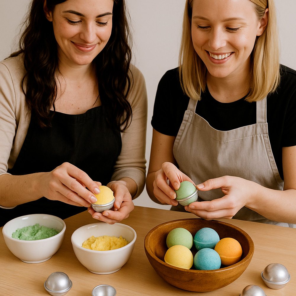 Que ce soit entre amies ou en famille, nos ateliers sont l’occasion parfaite de créer, rire et repartir avec des souvenirs… et des bombes de bain!